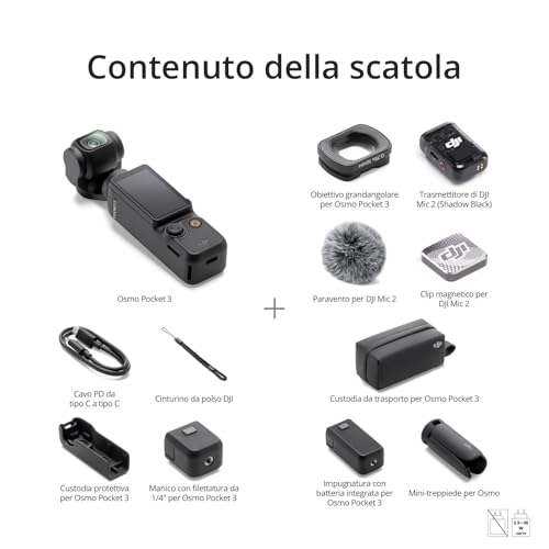 Il set base di Osmo Pocket 3 include il Trasmettitore per DJI Mic 2, l’impugnatura con batteria, il mini treppiede per Osmo e altro ancora. Questo bundle completo eleva le tue riprese con una batteria estesa e audio cristallini, rendendola un elemento essenziale per ogni content creator. In più, la Osmo Pocket 3 può connettersi direttamente a due trasmettitori DJI Mic 2/Mic Mini, garantendo audio di alta qualità per vlog, interviste e dirette streaming, e semplificando notevolmente l’attrezzatura e il flusso di lavoro.